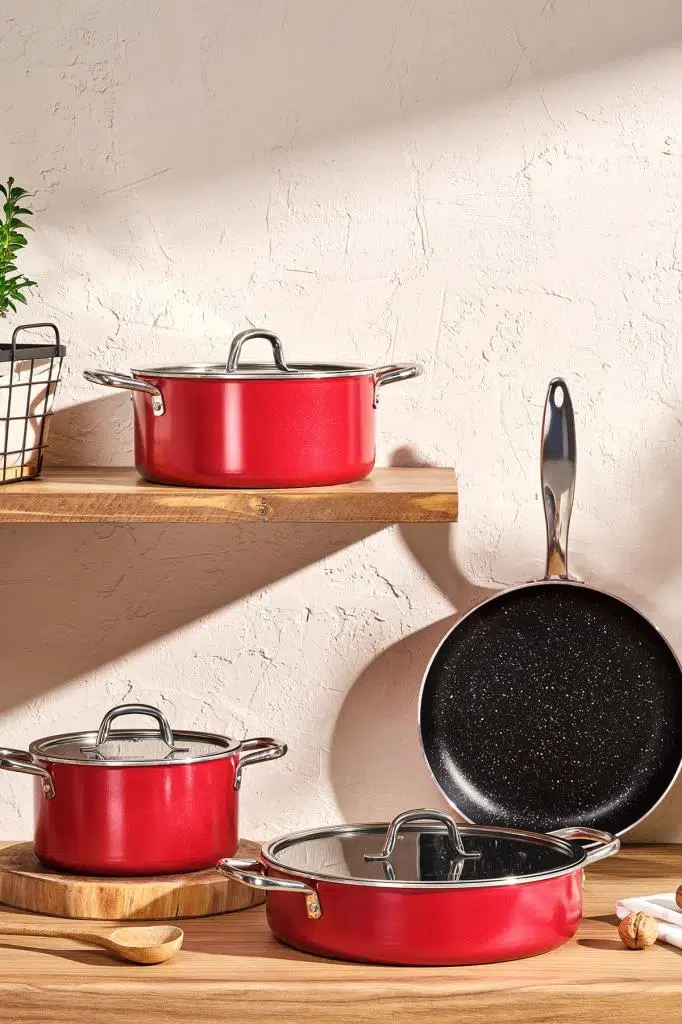 Emsan Master Class 7 Parça Tencere Seti Kırmızı Set İçerik 18 cm 1,8 Lt Derin Tencere