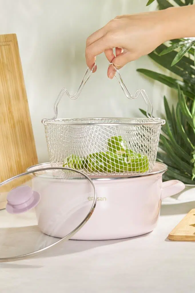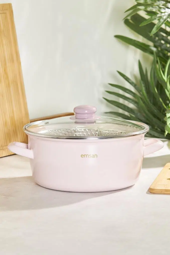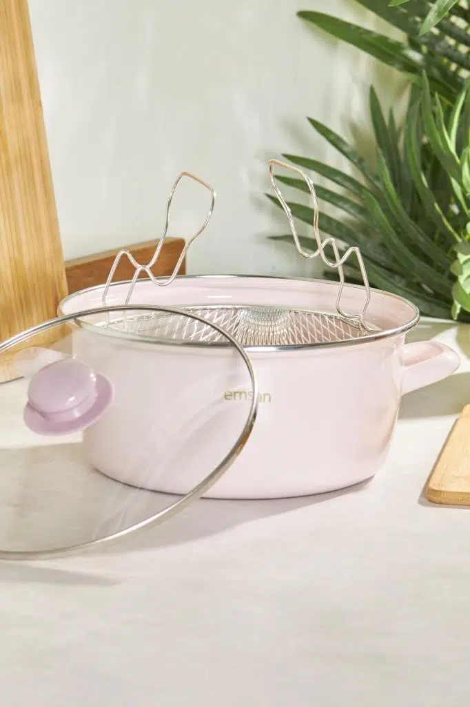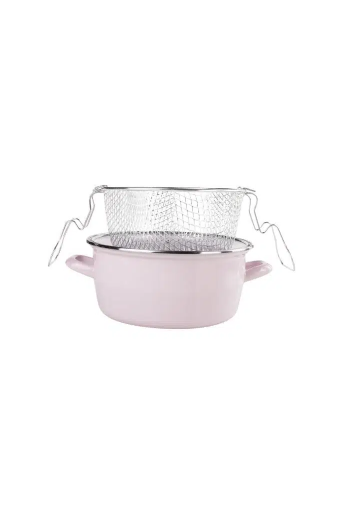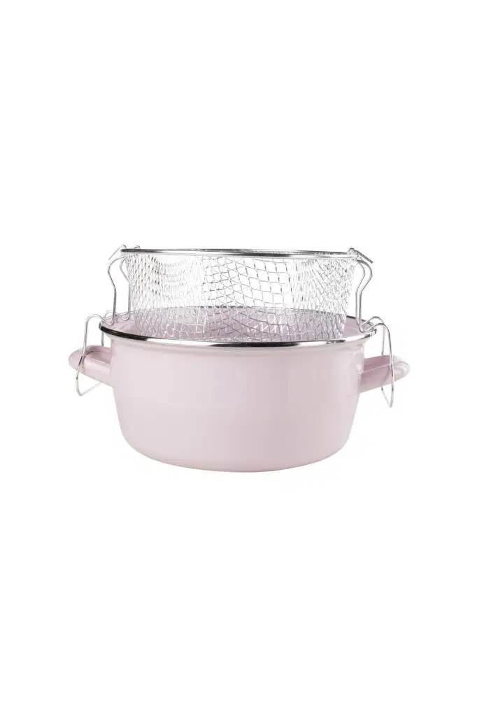 Emsan Pastel Emaye 24 Cm Kızartma Tenceresi Pembe İçerik 24 cm 3 Litre Kızartma Tenceresi