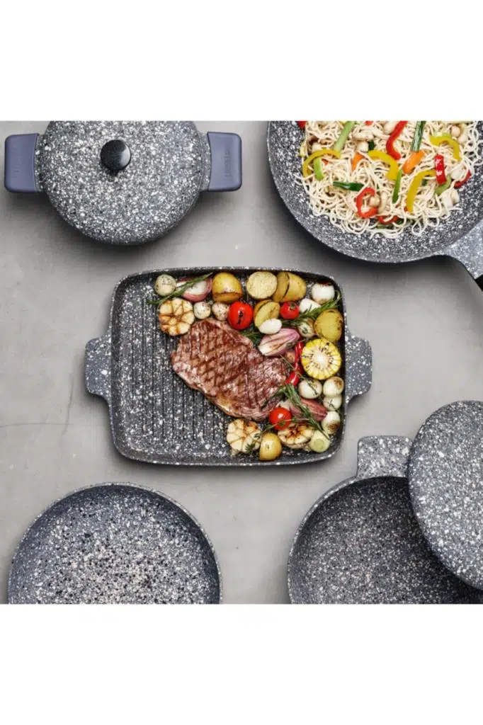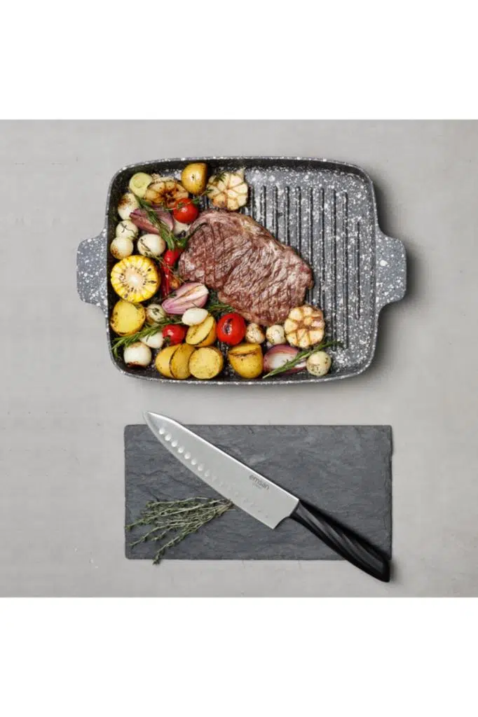 Emsan Perge Döküm 30x25 cm Izgara Tava Perge Döküm Granit Grill Ekstra güçlendirilmiş üç kat granit kaplaması ve alüminyum döküm gövdesi sayesinde tank gibi ekstra sağlamdır, çizilmelere karşı maksimum dayanıklıdır. Perge Grill ile eti önce ocak üzerinde mühürleyip, daha sonra fırında pişirme yapabilirsiniz. Perge Grill fırına girebilir. İndüksiyon hariç tüm ocaklarda kullanıma uygundur. Bulaşık makinesinde yıkanabilir. Perge Grill 5 Yıl Garantildir.