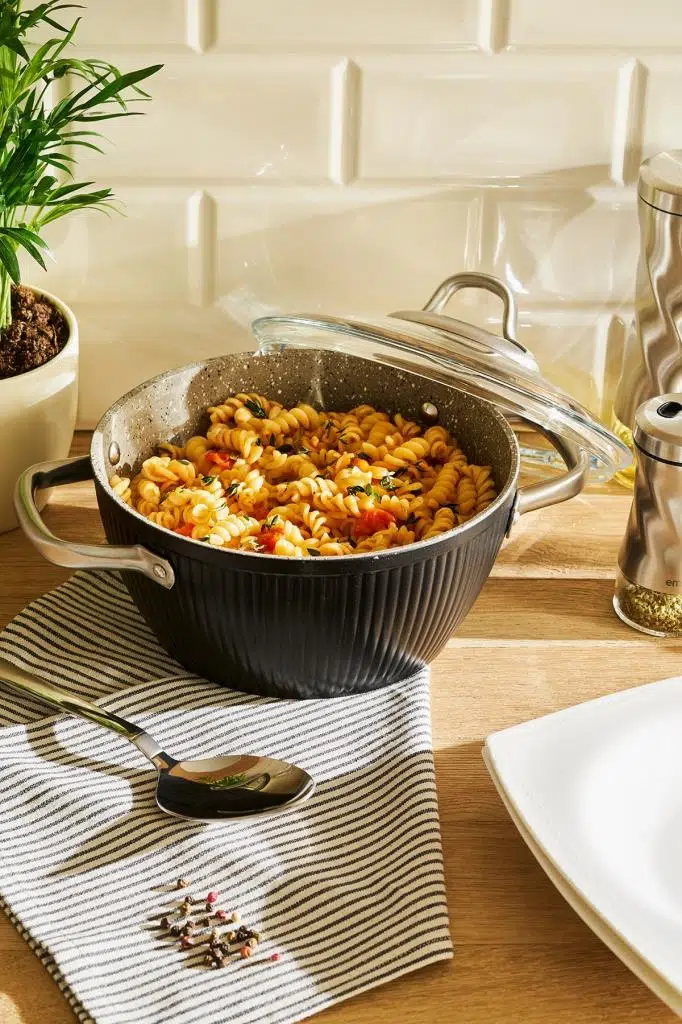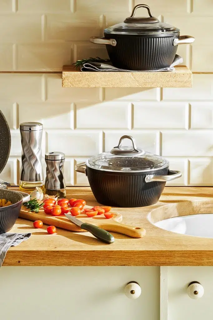 Emsan Sansa Granit Derin Tencere 24 cm Ürün Ölçüsü: 24 cm 3,6 Lt Malzeme: Granit Görünümlü Kaplama Özellikler Bulaşık makinesinde yıkanabilir, uzun ömürlü kullanım açısından düşük sıcaklıkta ve elde yıkanması tavsiye edilir. İndüksiyonlu ocaklarda kullanımı uygun değildir. Yanmaz yapışmaz özelliği sayesinde kolay pişirme ve temizleme özelliği vardır. Özel tasarım dış gövdeye sahiptir Şık tasarım saten çelik yan sap ve tepelere sahiptir Alüminyum gövde üzerine çizilmelere karşı güçlendirilmiş iç-dış granit görünümlü kaplamaya sahiptir. Şık cam kapakları sayesinde yemeklerin pişme durumu rahatlıkla takip edilir.