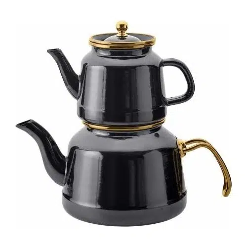Emsan Troy Emaye Nostalji Çaydanlık Takımı Siyah