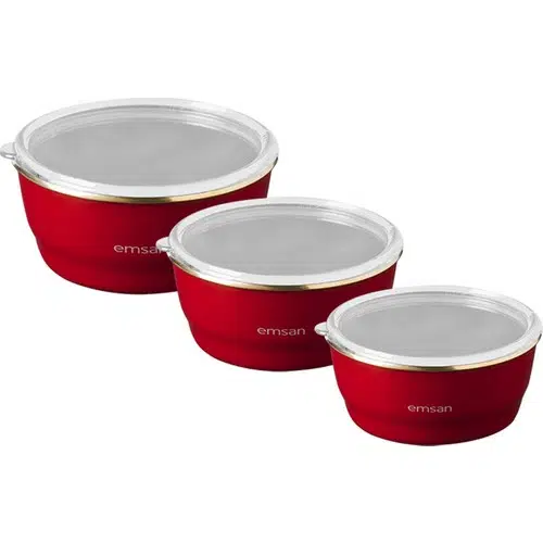 Emsan Troy Emaye Saklama Kabı Kırmızı 3'Lü