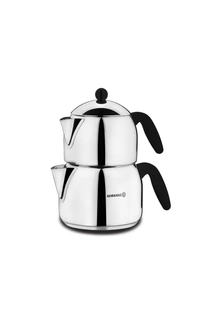 Demlik Hacmi: 0.7 lt Alt Hacim: 1.4 lt Demlik Hacmi: 0.7 lt Alt Hacim: 1.5 lt 18/10 Cr-Ni Paslanmaz Çelik İndüksiyon taban Üç kat kapsül taban 135mm geniş taban yüzeyi. Estetik özel küre form. Parlaklığını koruyan özenle polisajlanmış dış yüzeyler. Ergonomik ve el yakmayan siyah renkli bakalit saplar. Yüksek derecede temperlenmiş kırılmaya dayanıklı özel tasarlanmış transparan cam kapak